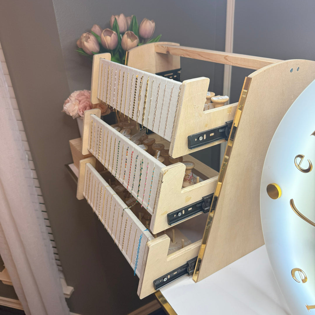 Display, organize, and work faster with our 3-Tier Jewelry Rack—designed for makers who want beauty and function in one sleek stand.